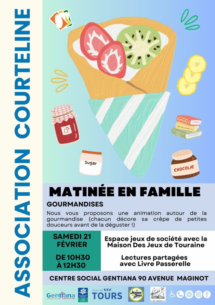 L’équipe du centre socio culturel, Livre Passerelle et la Maison des Jeux de Touraine, vous proposerons un temps en famille autour du thème de la GOURMANDISE !
